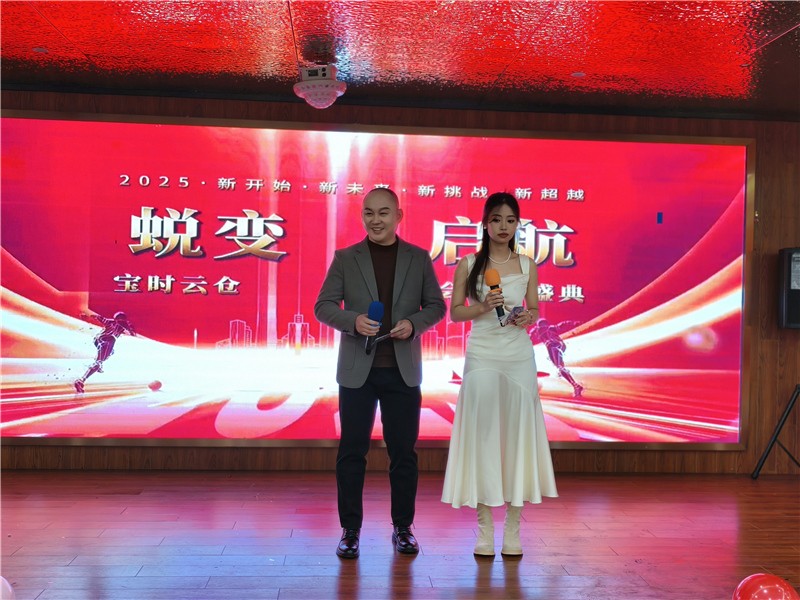 2025 年 1 月 12 日,在上海松江區江南婆婆宴會廳,寶時云倉成功舉辦了一場熱鬧非凡的年會暨表彰大會。“蛻變 啟航” 這一主題貫穿始終,寶時云倉全體員工在此齊聚一堂,共同回顧過去一年的奮斗歷程,展望充滿希望的新一年。